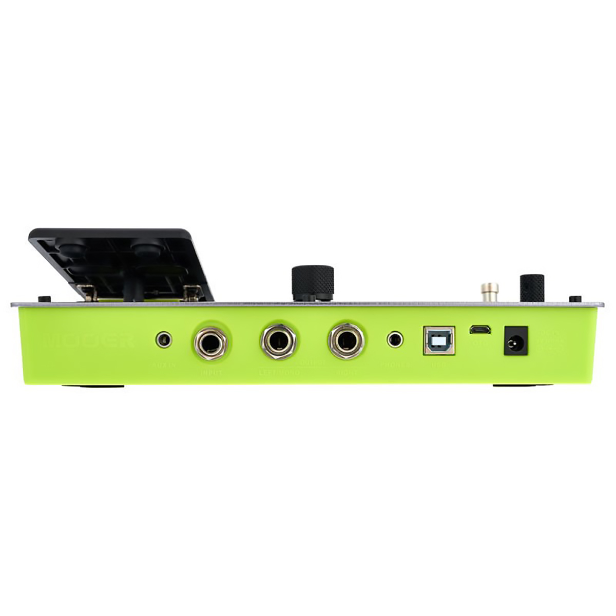 Педаль эффектов легко подключается к вашей гитаре с помощью входов Mini-jack и Jack (6.3). Питание осуществляется от источника DC 9V с потреблением всего 300 мА, что делает ее энергоэффективной и удобной в использовании. Два разъема USB позволяют подключить устройство к компьютеру для записи или синхронизации с другими аппаратами.