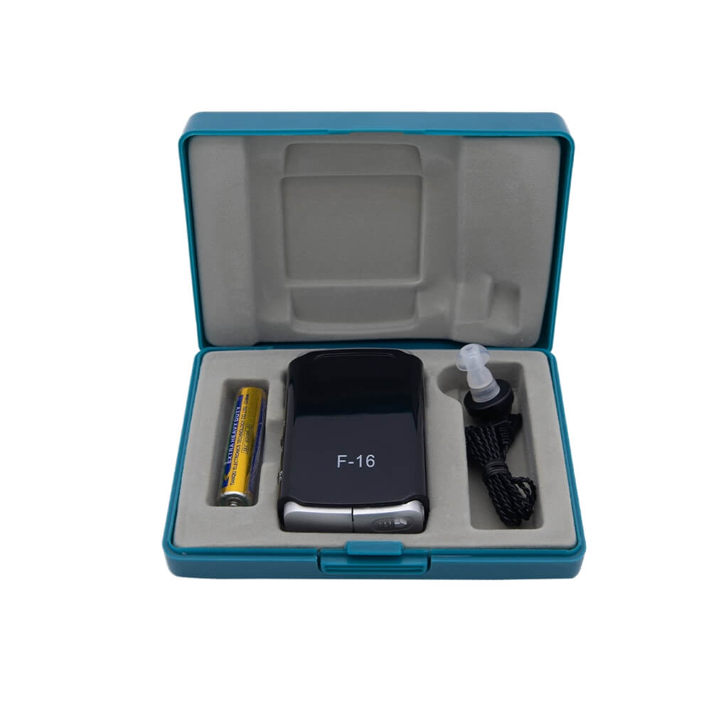 Карманный слуховой аппарат обладает высокой чувствительностью и хорошими частотными характеристиками. На корпусе прибора расположены: выключатель, регулятор громкости, регулятор тембра и стальной зажим для крепления аппарата к одежде. Ушной телефон подключается к аппарату проводом. Для установки в слуховой проход телефон оборудован тремя сменными ушными вкладышами разного размера. Питается слуховой аппарат от одной батарейки формата ААА.