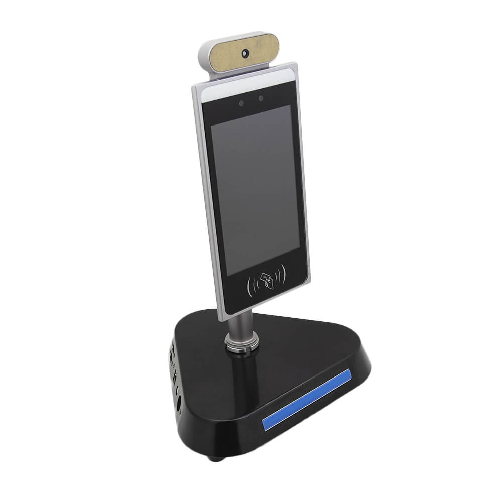 Бесконтактный термометр для дистанционного измерения температуры предназначен для контроля температуры тела и проходящих мимо него людей. Прибор рассчитан на большую пропускную способность и производит замер температуры всего за 0ю2 секунды. В прибор интегрирована видеокамера и цветной ЖК дисплей диагональю 8 дюймов. Встроенная в прибор система идентификации по пластиковым карточкам позволяет строить на его основе систему допуска в помещение. Результаты замеров сохраняются на карте памяти объемом до 8 Гб. Прибор выполнен в настольном исполнении, в комплекте специальная подставка с двумя портами USB, портом RJ-45 и входом питания. Кронштейн позволяет регулировать поворот и наклон прибора.